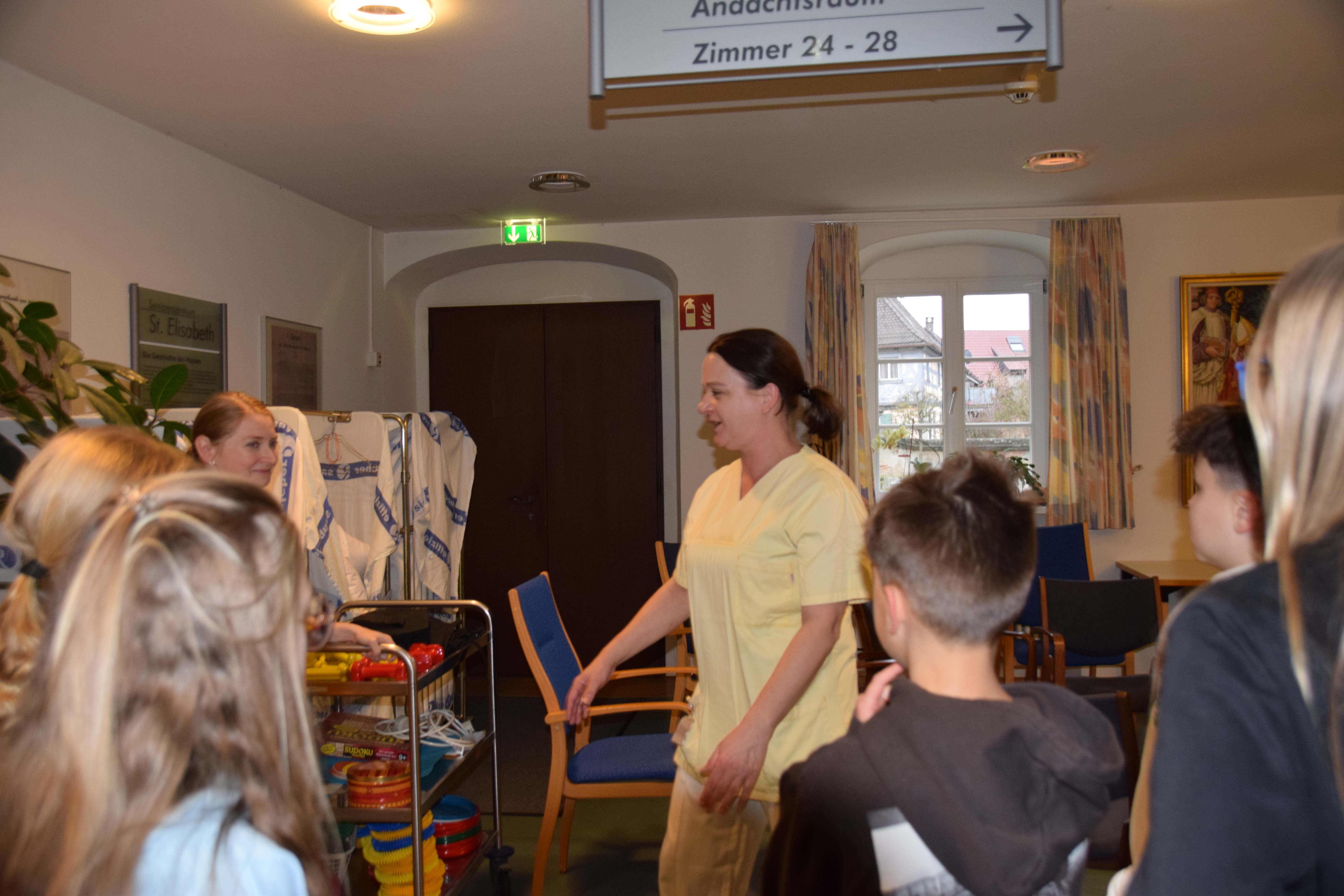 Am 15. Dezember 2025 besuchte Frau Rudrof mit ihrer 6. Klasse das St. Elisabeth-Seniorenzentrum in Scheßlitz. Nach einer herzlichen Begrüßung durch das Personal und einem Weihnachtsauftritt der Klasse führte Frau Silvia Freitag die Klasse und ihre Lehrerin durch das Haus und erklärte einige Vorrichtungen und Hilfsgeräte.