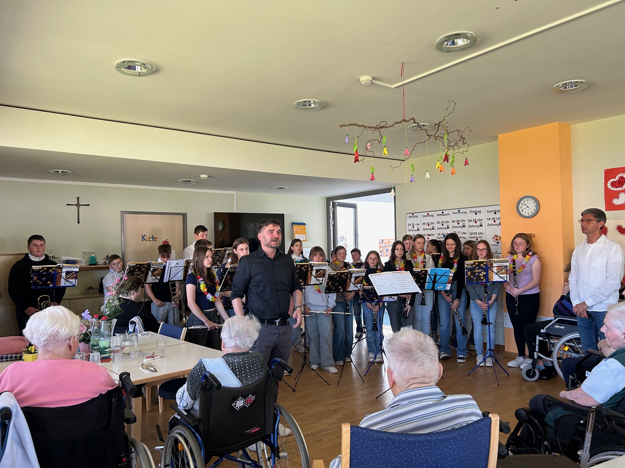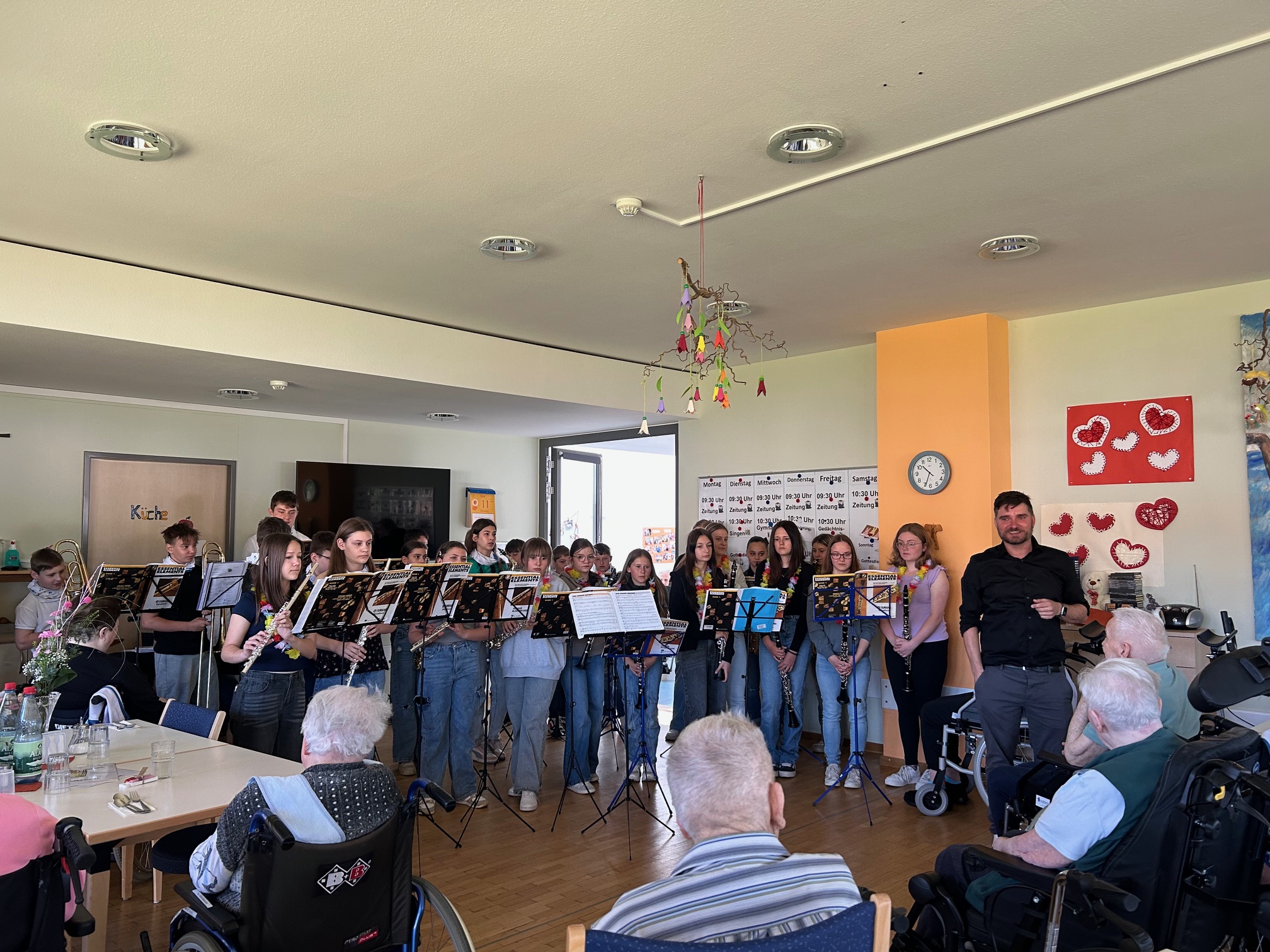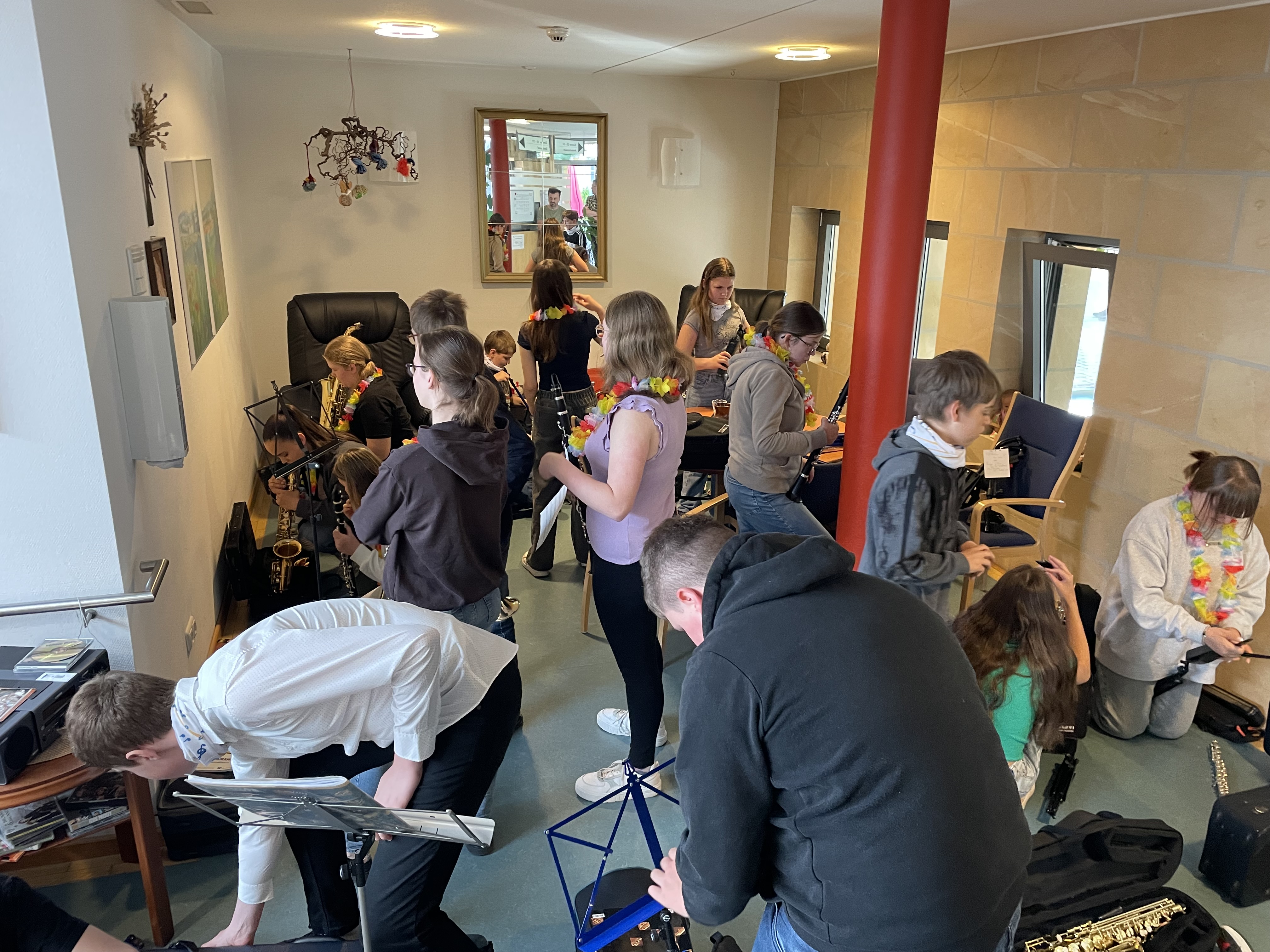 Die Probentage waren geprägt von viel Fleiß, Teamgeist und musikalischem Feinschliff. Umso schöner war es, das Erarbeitete schließlich auf die Bühne zu bringen: Es war eine besondere Freude, den älteren Menschen mit unserer Musik ein Lächeln ins Gesicht zu zaubern. Mit viel Herzblut und Spielfreude haben unsere jungen Musikerinnen und Musiker ihr Können gezeigt – ein gelungener Auftritt, der berührte und begeisterte.